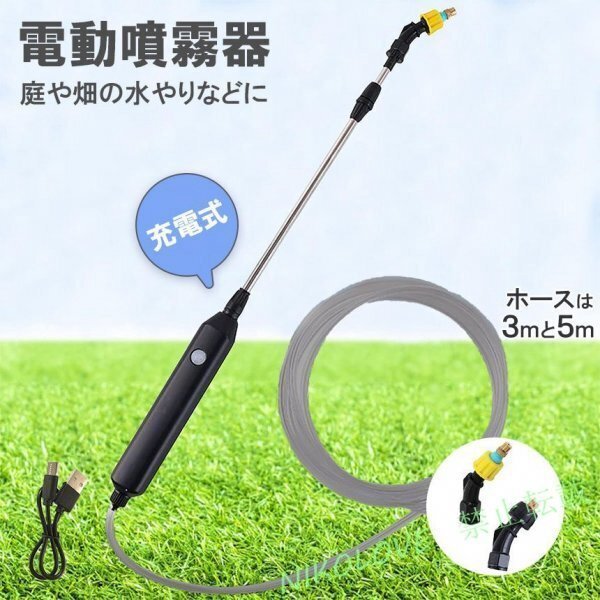 - 新品 噴霧器 電動 充電式 霧吹き ポータブル Type-C充電 3種類のノズル 吸水ホース 家庭の掃除 園芸水やりなど 3m/5m LB955