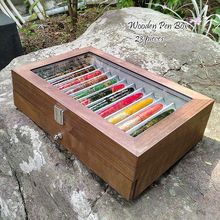 - ■●最新! ペンボックス 23本収納 耐久性に優れた天然木 ウォルナット 2段式 木製コレクションケース 万年筆入れ 引き出し 新品 /M588a*