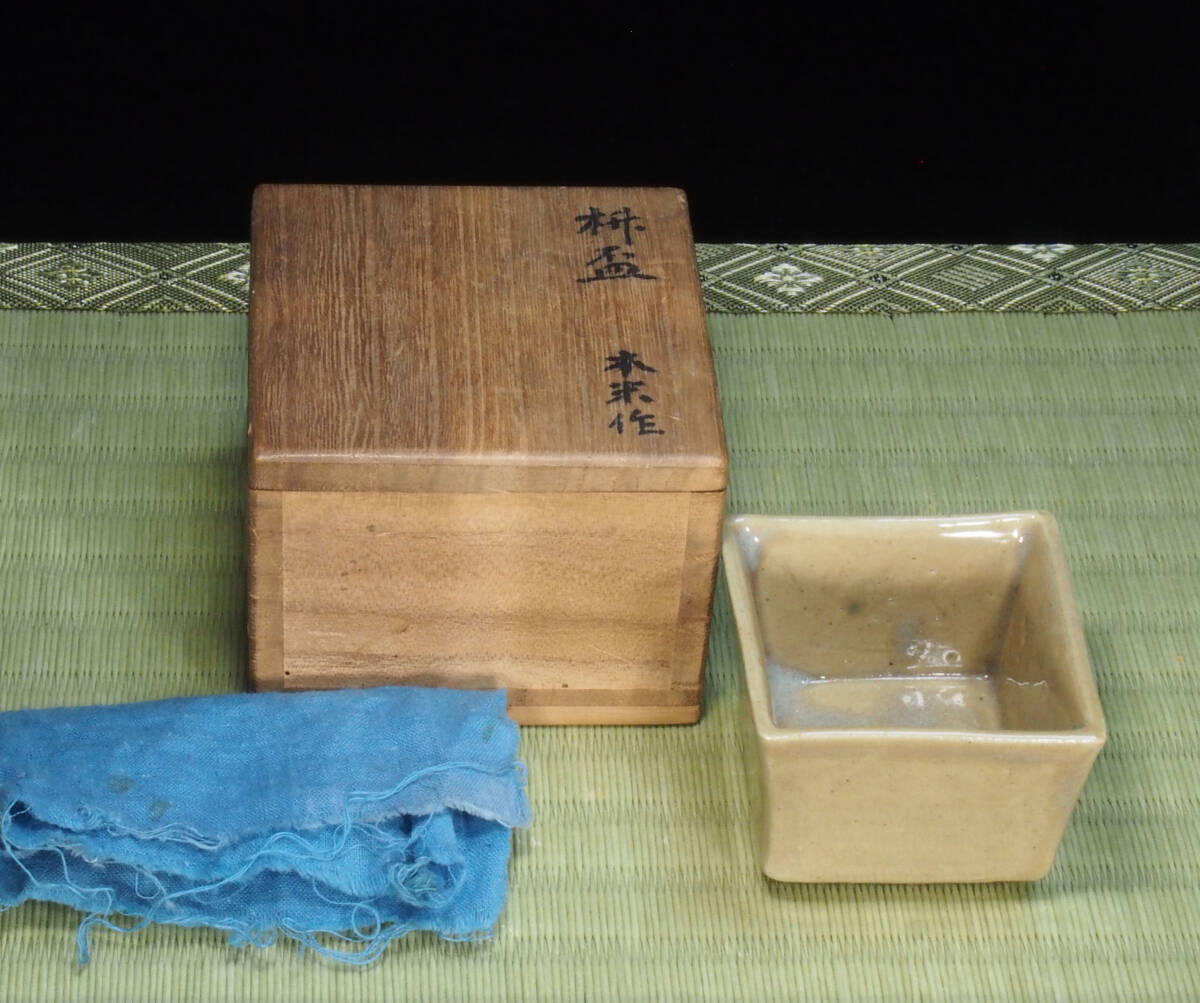 - 青木木米 高麗青磁 枡形 盃 検)京焼 江戸末期の陶工 煎茶椀 急須 茶道