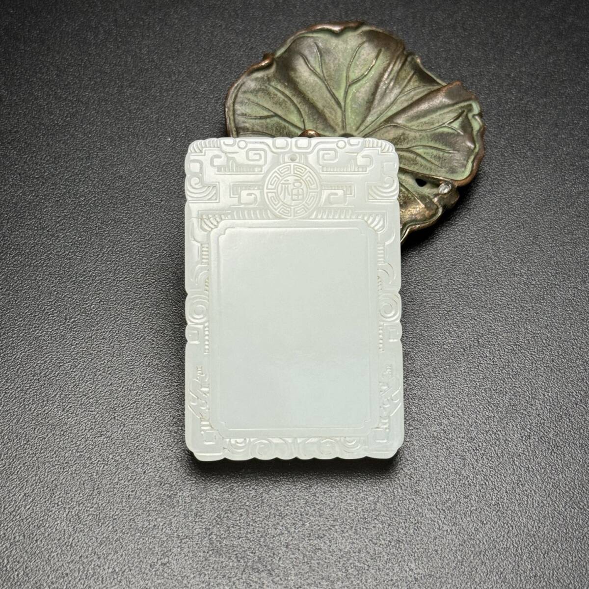 - 『館蔵珍品 和田玉製 細密彫 平安無事牌 置物 賞物』文房具 書道品 貴重物品 収蔵品 中国古美術 時代物 古董品