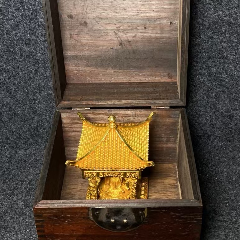 - 清時代 花梨木寶盒珍藏 古銅金 四面觀音 神像 佛龕 箱有 極細工 古置物 古美術 古賞物 古董品 時代物 旧家蔵出 中国唐物927