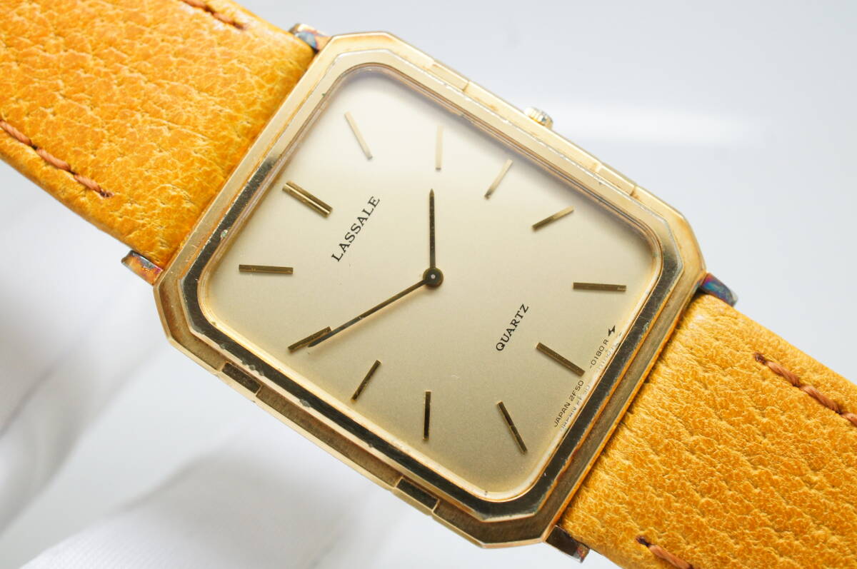 > Z96●作動良好 未使用ベルト SEIKO セイコー LASSALE ラサール 2F50-5149 金文字盤 メンズ腕時計 ゴールド金 お洒落 クォーツ