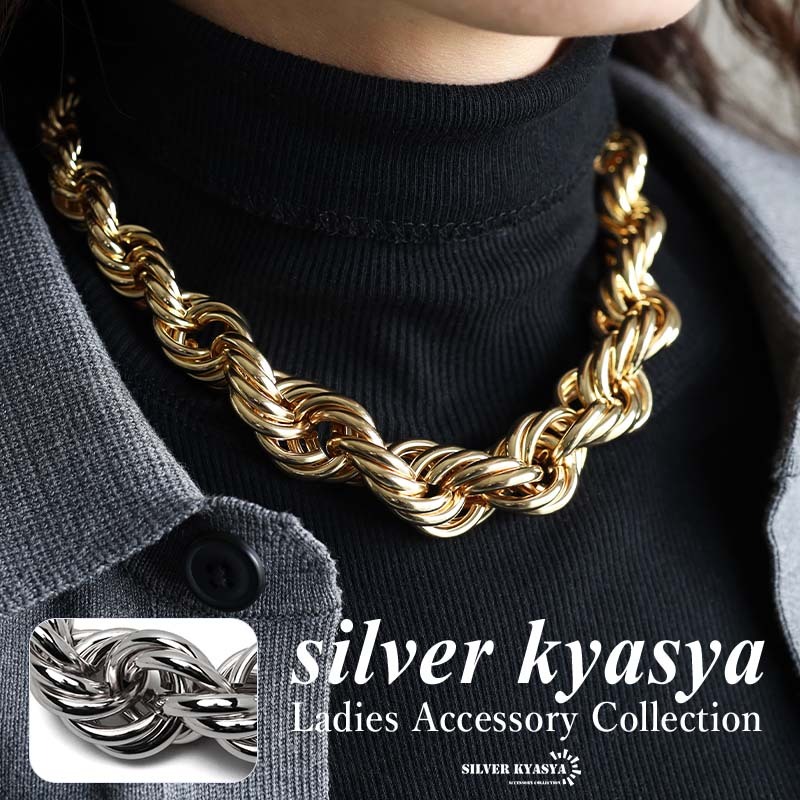 - (シルバー) 超極太!ロープチェーンネックレス フレンチロープ ツイスト チャンキー ごつめ シルバー レディース