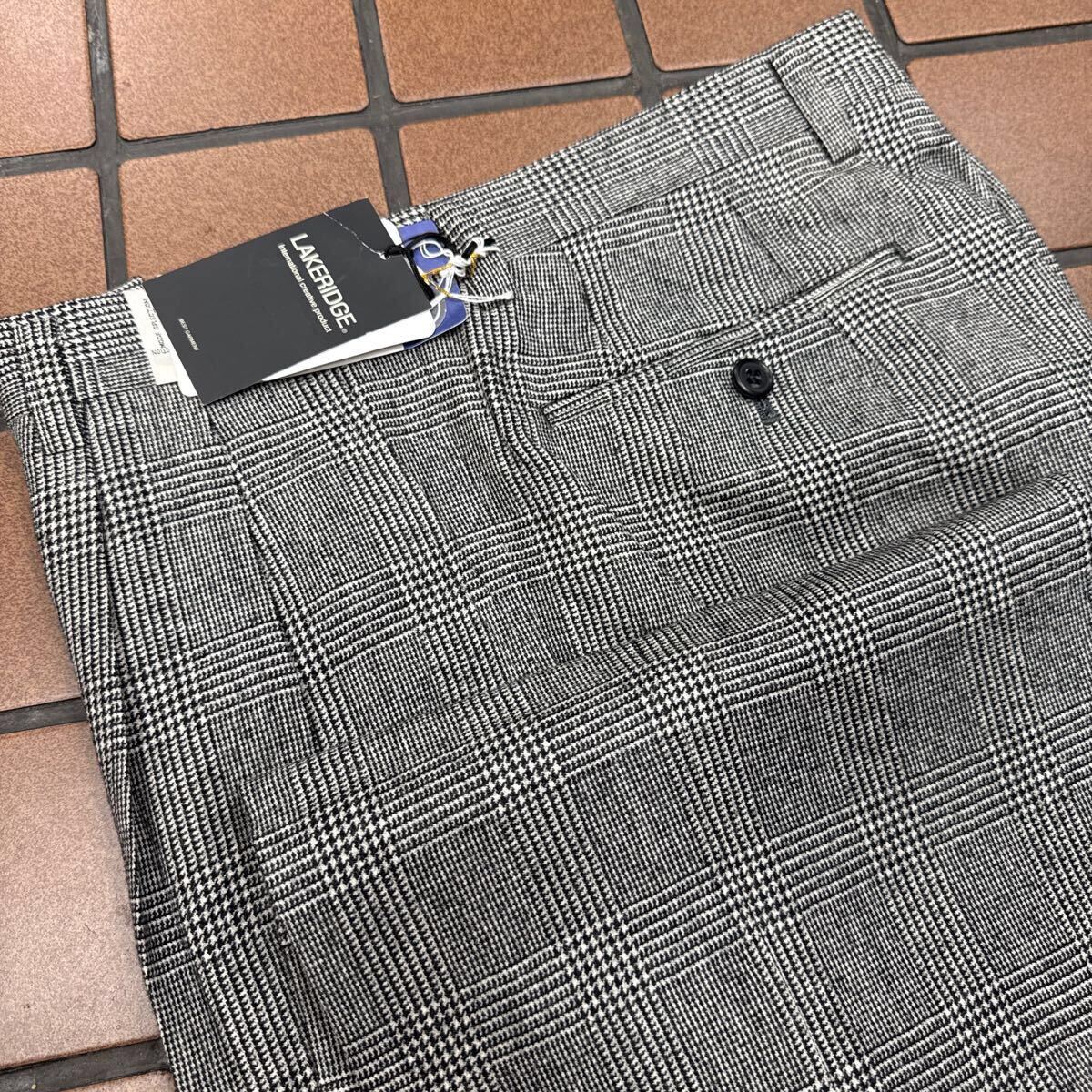 - 新品☆未使用 グレンチェック 艶感 W79cm グレー系 ウール100% スラックス ゴルフパンツメンズ ゴルフウェア GOLFパンツ ふわふわ生地