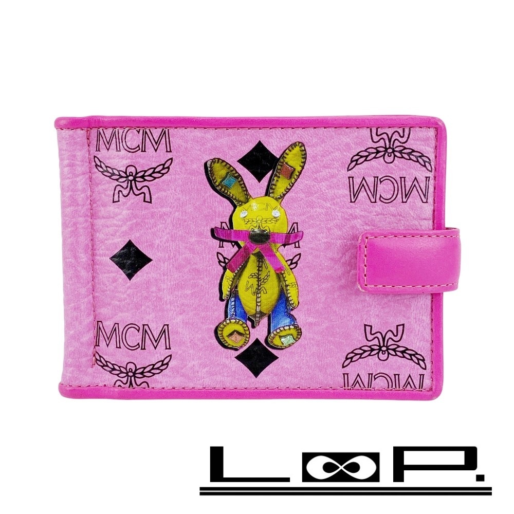 > ■美品■ MCM マネークリップ パスケース カードケース 財布 ウサギ ラビット PVC ピンク 箱 【432446】10