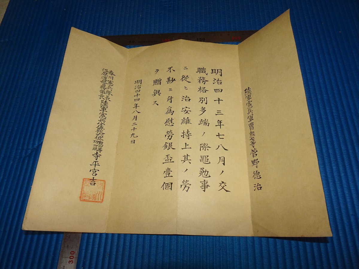 > Rarebookkyoto F2B-415 李朝朝鮮 春川憲兵隊 銀盃賞状 1911年頃 名人 名作 名品