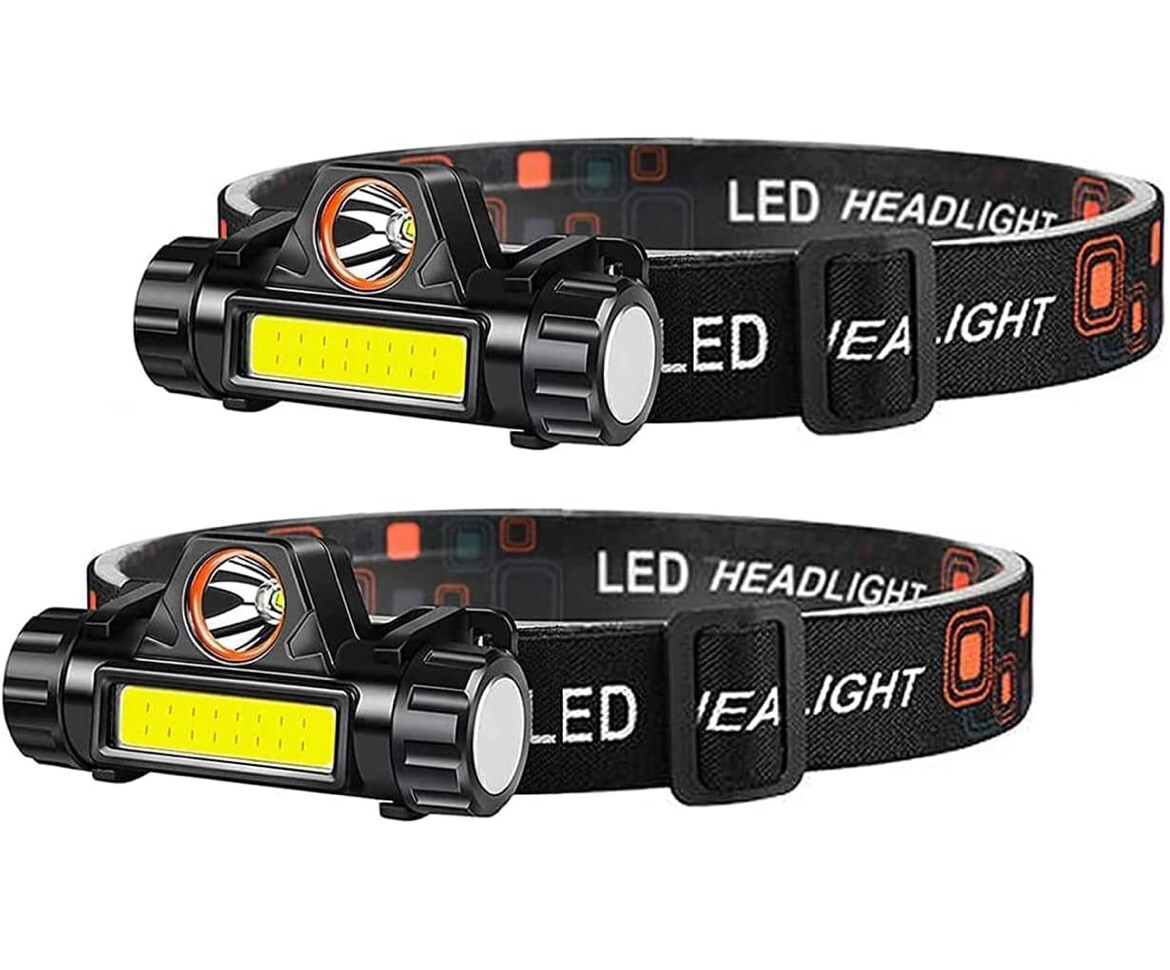 - 2点セット ヘッドライトセット 超軽量 IPX5防水 耐塵 【USB充電 300ルーメン 釣り/登山/キャンプ/停電用】(2pcs)