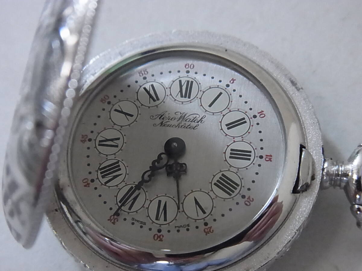 > 170924H82-0927H■Aero Watch■アエロウォッチ 17石 NEUCHATEL ヌーシャテル シルバー文字盤 2針 懐中時計 手巻き アンティーク