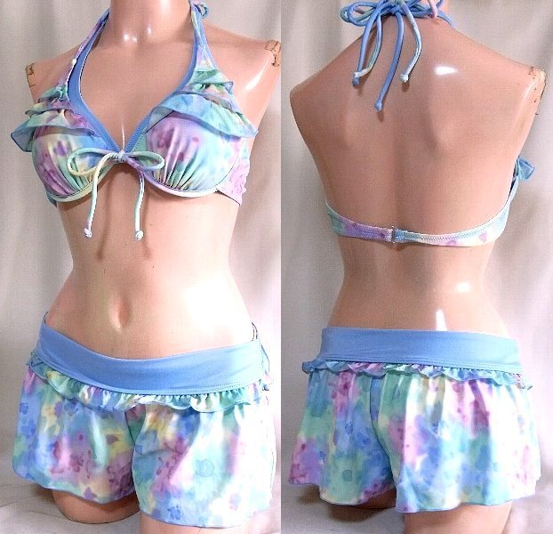 - ★☆胸フリルがかわいい淡いパステル色ビキニ水着キュロット付き☆★