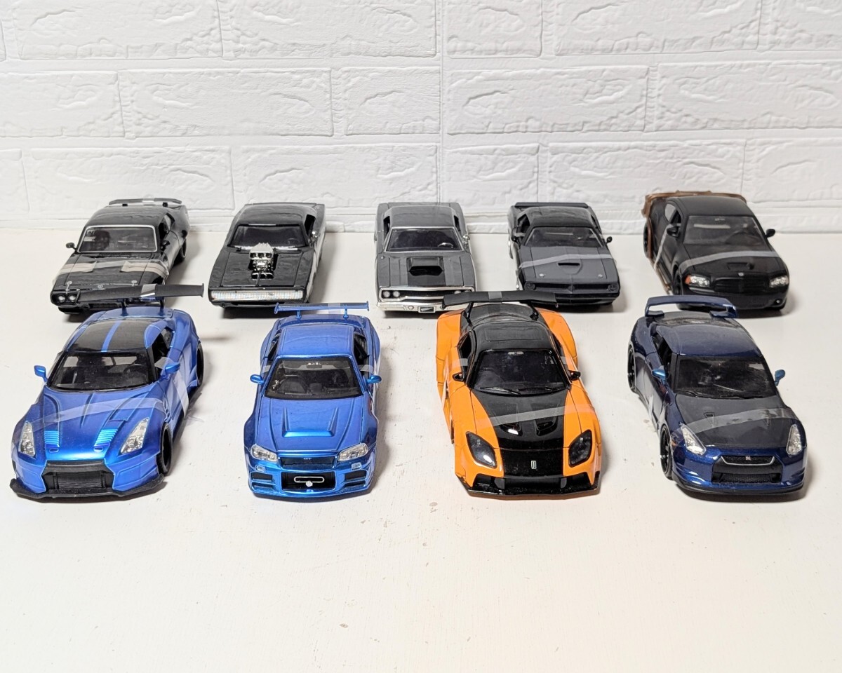 - JADA TOYS ワイルドスピード 1/24 ダイキャストミニカー 9台まとめ NISSAN SKYLINE GT-R MAZDA RX-7 ダッジチャージャー ほか 現状品