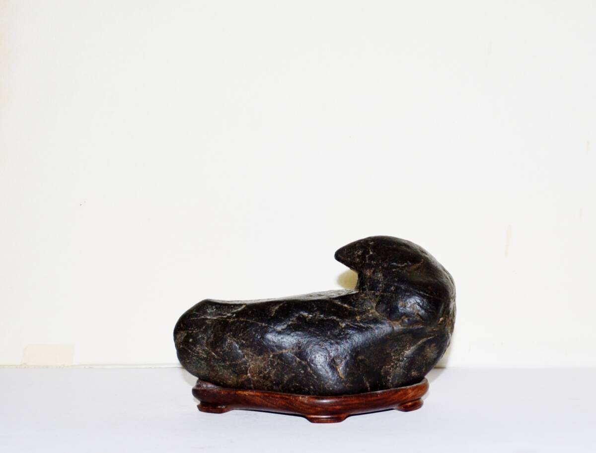 - 愛石家旧蔵品 加茂川石・象形石・真っ黒 水石 鑑賞石 台座 盆栽 盆景 水盤 盆器