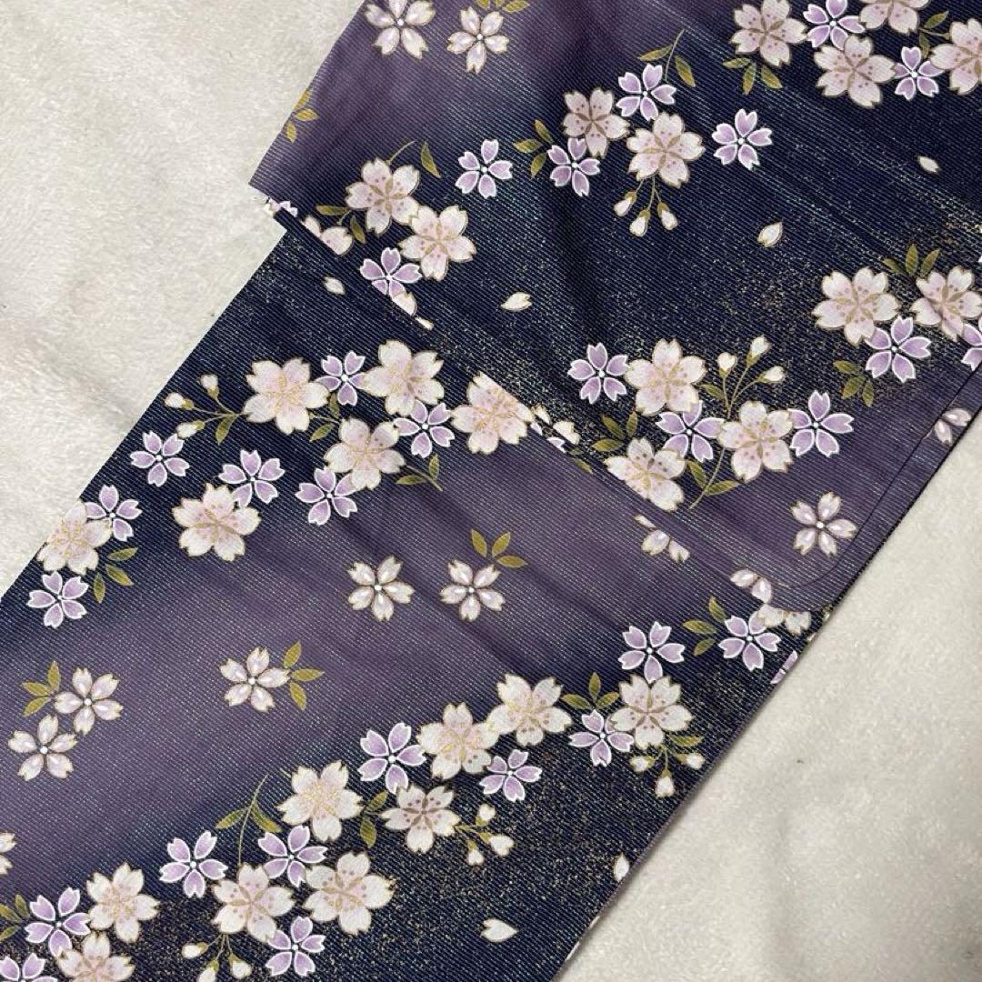 - 浴衣 紫 ラメ 桜 ぼかし 大きめ 生地日本製 ゆかた 丈163cm 裄67cm ミシン縫い