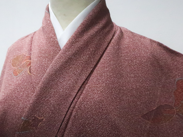 - 《京都一輝堂》リサイクル着物 小紋 茄子 正絹 身丈約158cm 裄丈約65cm 25z08-4470