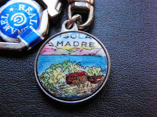 - F45-9★イタリア&スイス マードレ島 キーホルダー/スイスとイタリア マッジョーレ湖に浮かぶ島/アメリカ買付ビンテージ キーホルダー