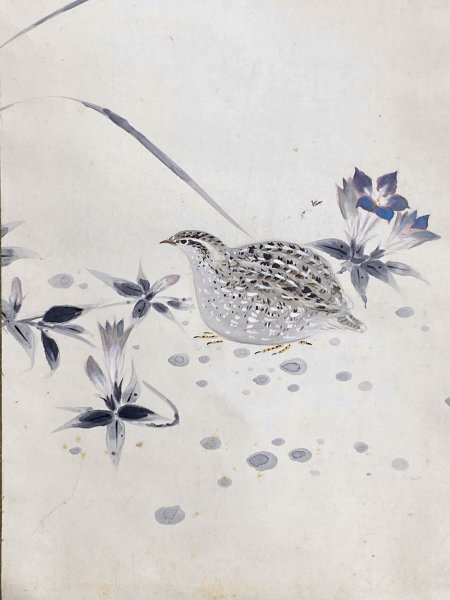 > 《魚亀》【模写】朝見香城「鶉図」紙本 紙箱 森月城 西山翠嶂師事 日本画 中国 茶掛 茶道具 無落款 掛軸 掛け軸 人が書いたもの