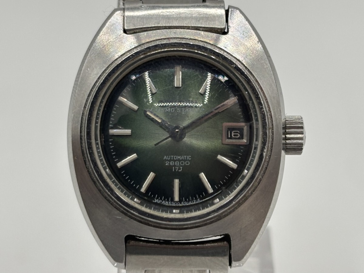 - H38972052526 CITIZEN シチズン コスモスター 4-690231 レディース腕時計 ウォッチ 緑文字盤 オートマチック デイト 17石 稼働 現状品 中古