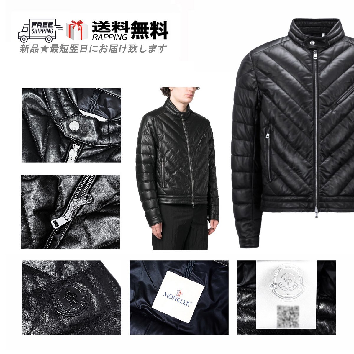> K924-2.. MONCLER モンクレール GRIAZ ダウンジャケット レザー ライダース バイカー アウター フェザー ロゴ ★ 999 ブラック