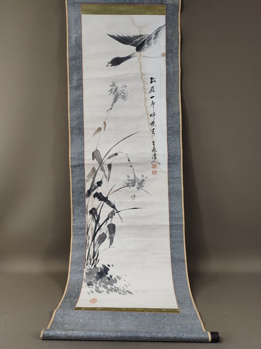 - k134 【作者不詳】花鳥図 古美術 中国美術 紙本 掛け軸 骨董品 古美術 時代物 模写