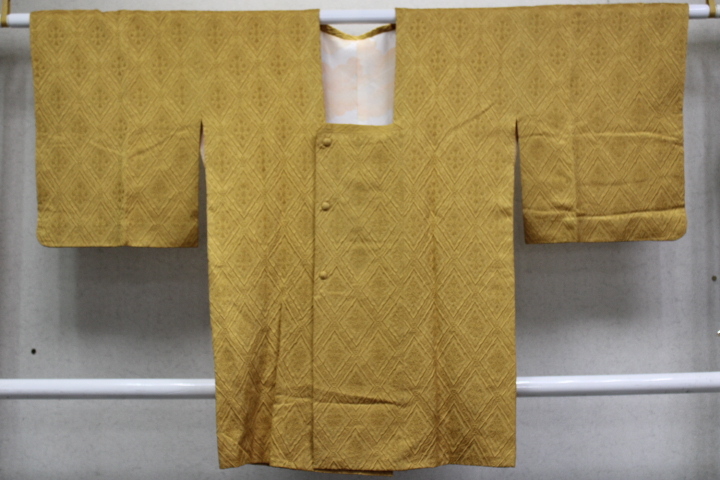 - きもの今昔9004 道行コートコレクション 正絹纐纈織 画像⑤凹凸が大きい生地 からし色 身丈87cm