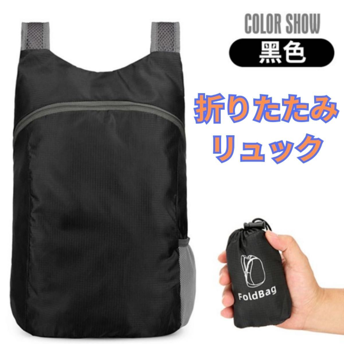 - 折りたたみ リュックサック 黒 ブラック 防水 大容量 コンパクト 軽量 バック アウトドア 旅行 耐久 男女兼用 レジ袋
