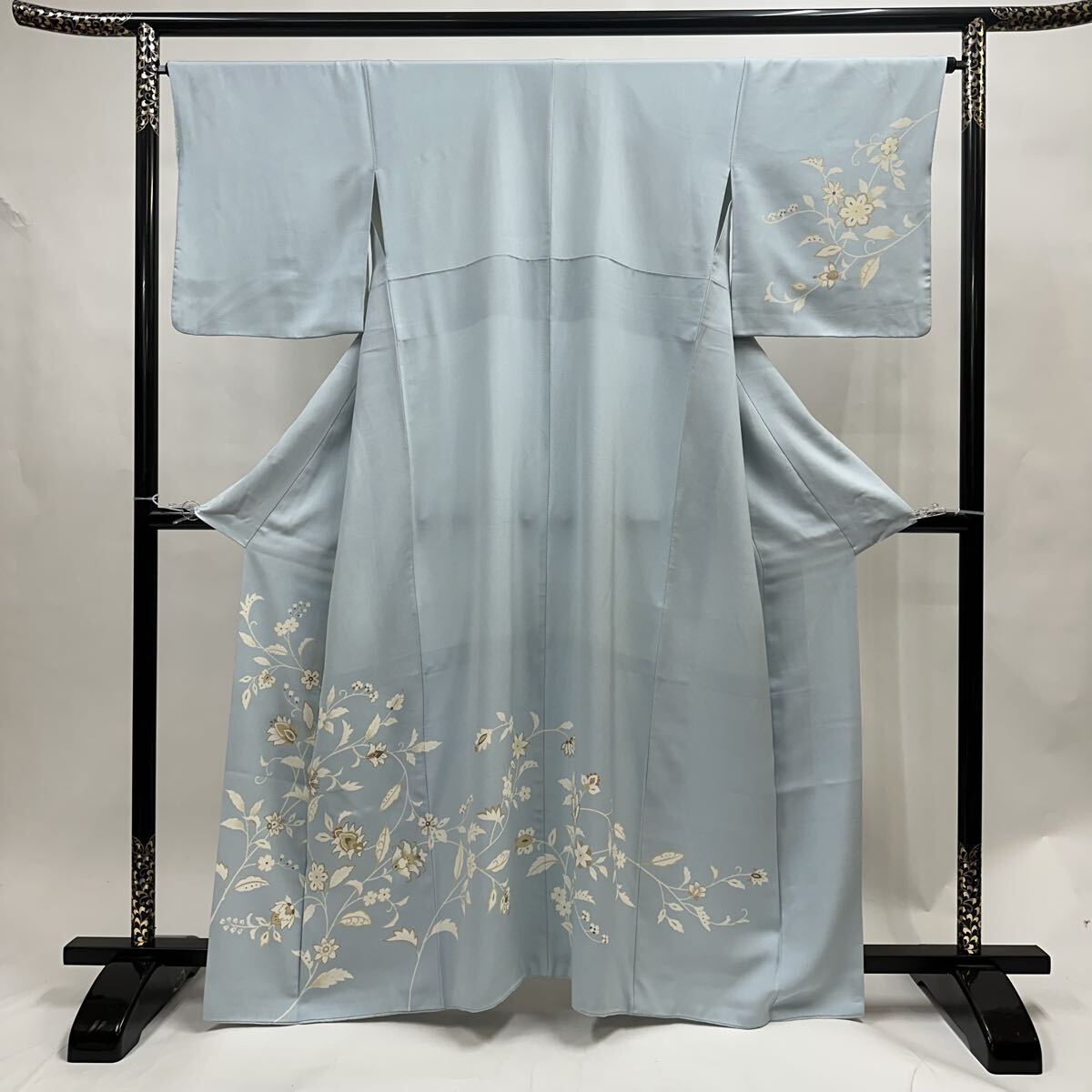 > 【七福】c891 訪問着 正絹 袷仕立て 唐花 金駒刺繍 着物 逸品 身丈 約159.5cm 裄 約66cm