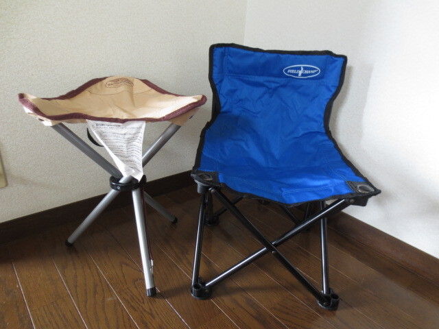 - 未使用・折りたたみ椅子2点・持ち手付ケース有・キャンプや釣りなどに・FIELD CHAPアクション千ェアー・トリポットチェア SOUTHERNPORT