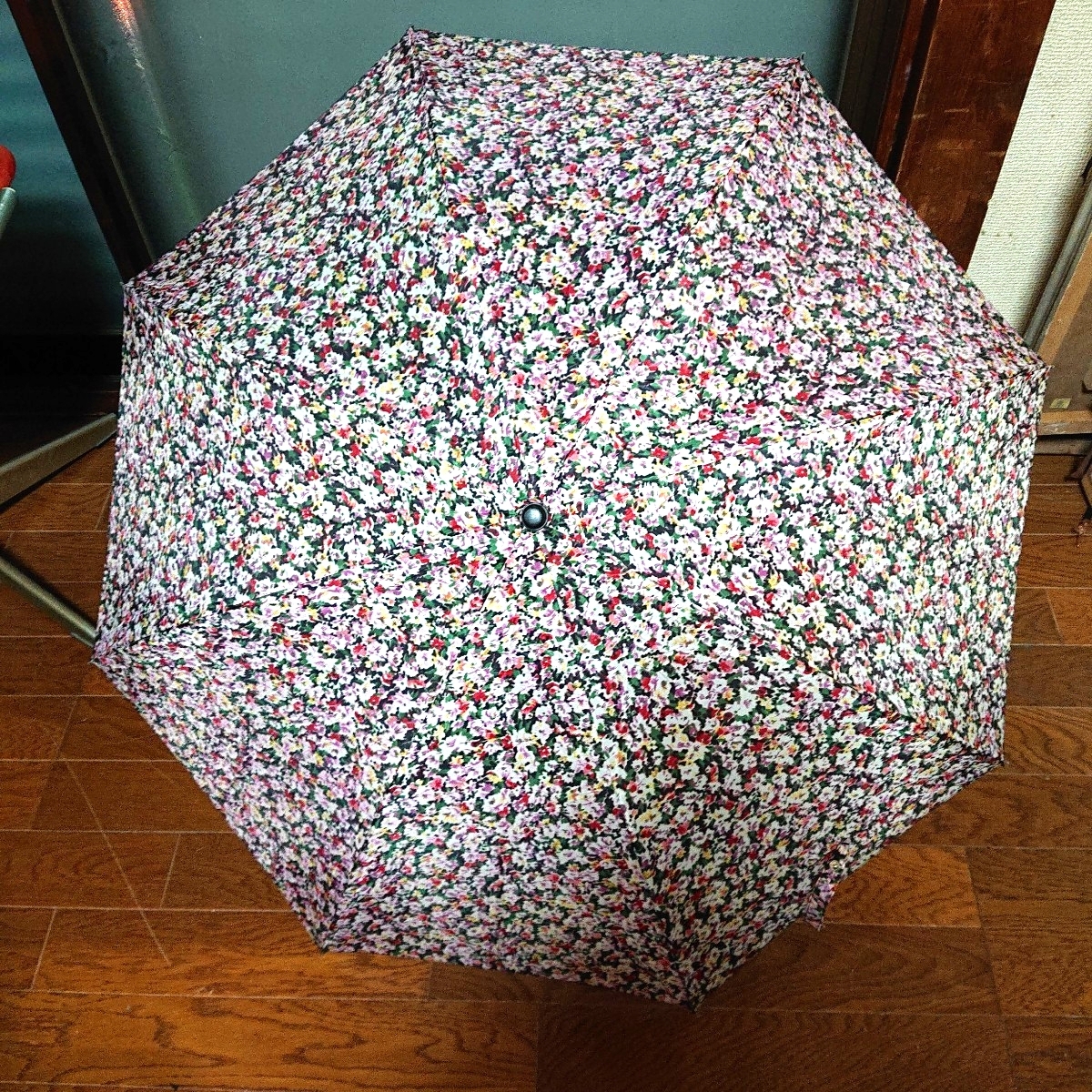 - 【傘】手動型 折りたたみ傘 小花柄 径約90cm 当時物 現状品 ぷらみ 0928 143