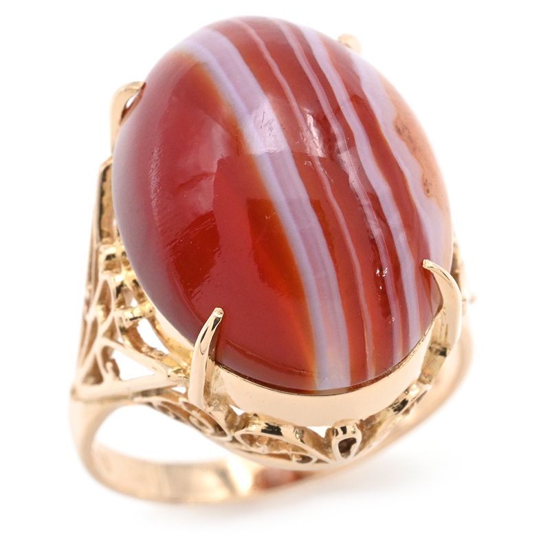 > 10.322ct天然アゲートリング 13号 K18PG カボションカット サードニクス ブラウン ホワイト 縞模様 ピンクゴールド 地金4g 中古 送料無料