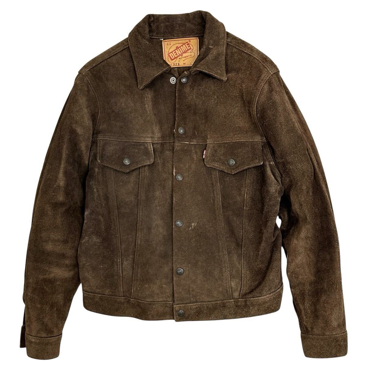 - 希少!!オリゾンティ 旧ドゥニーム DENIME Lot323 スウェード 3rdタイプ 牛革 レザー トラッカー ジャケット(38)ブラウン ブルゾン