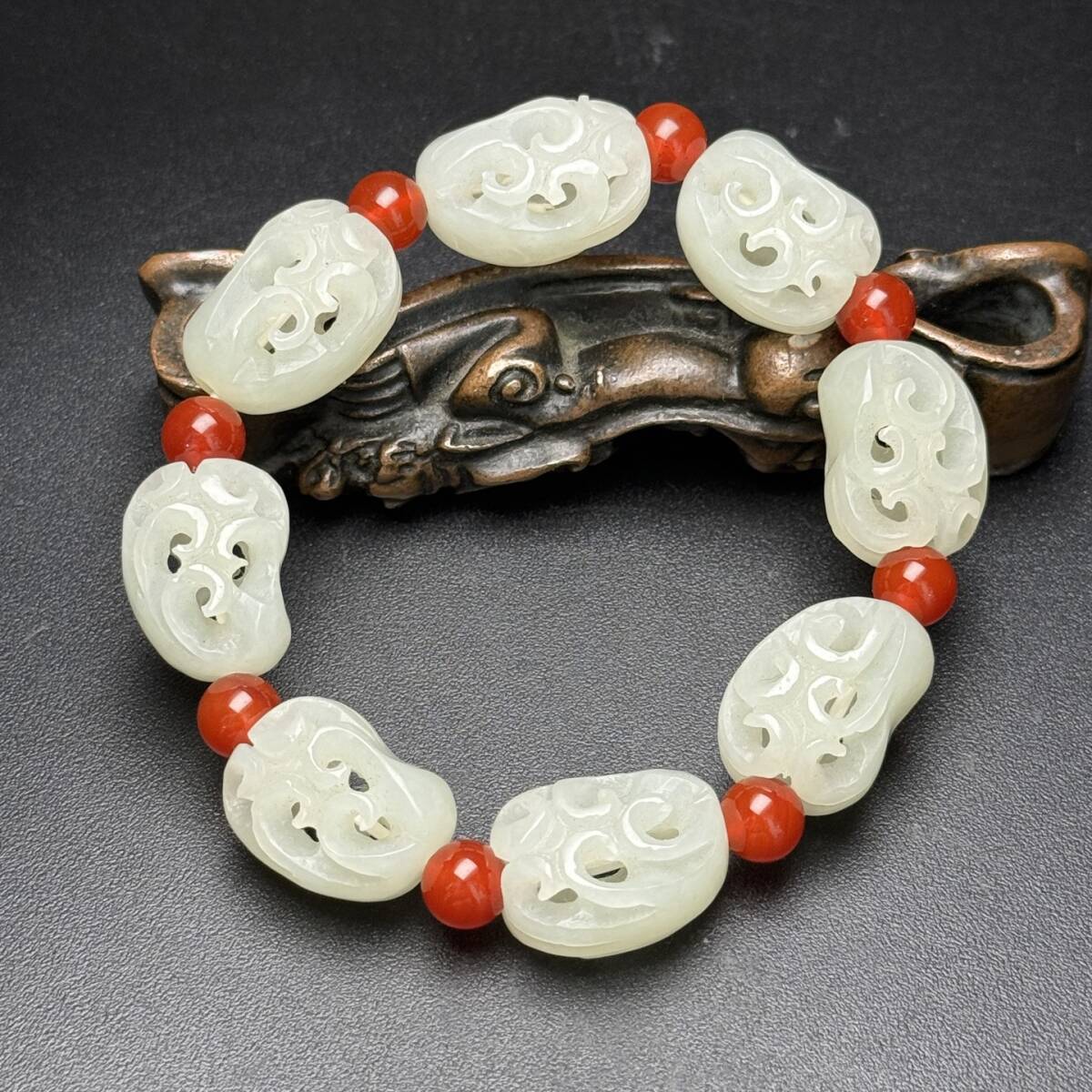 > 旧蔵 清 玉彫 和田玉 仏手手鏈 代表仏家之手 護平安吉祥 彫刻精美 玉質温潤 極細工 中国古玩 骨董品 古美味 209