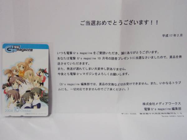 - 新品未使用 抽プレ テレカ 当選通知書付き 双恋 フタコイ ささきむつみ 電撃G'sマガジン 抽選プレゼント
