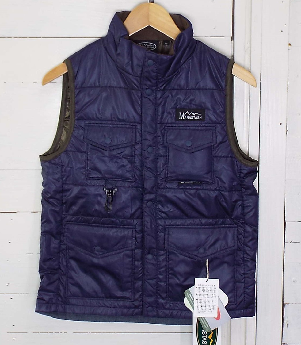 - T2814[ほぼ未使用]MANASTASH(マナスタッシュ)ベスト 中綿 ポリエステル プリマロフト パープル 下札付 XSサイズ
