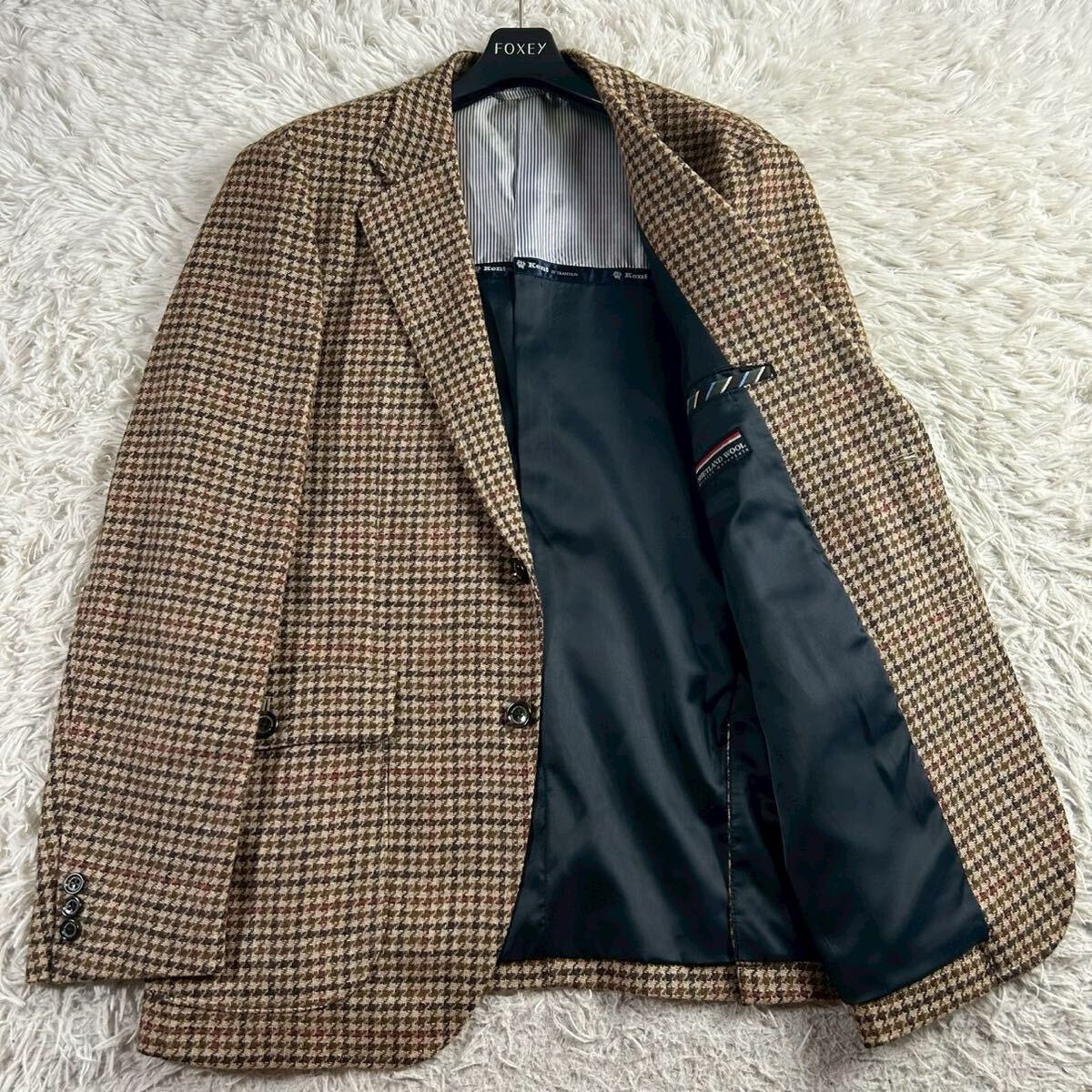 > ●極美品/希少XL KENT ケント VAN JACKET テーラードジャケット ツイード ハウンドトゥース シェットランドウール 刻印釦 トラッド 保湿性