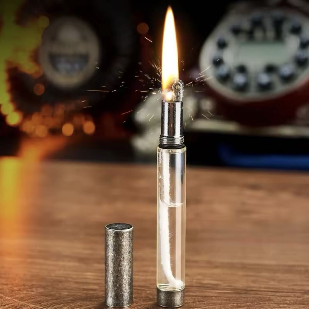 - 新品 オイルライター 透明な燃料タンク タバコサイズ 銀色