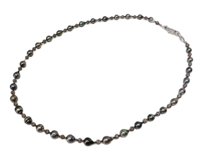 - 南洋真珠 バロック パール ロングネックレス SILVER 首周り約80cm 珠約8.6~10.7mm 重量61.0g 黒真珠 シルバー金具