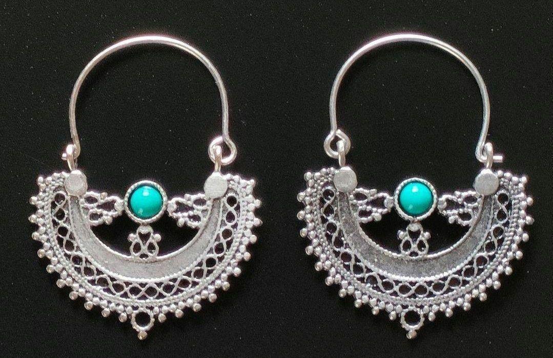 - ボヘミアン シルバー ピアス 水色 エスニック アラビアン ターコイズ