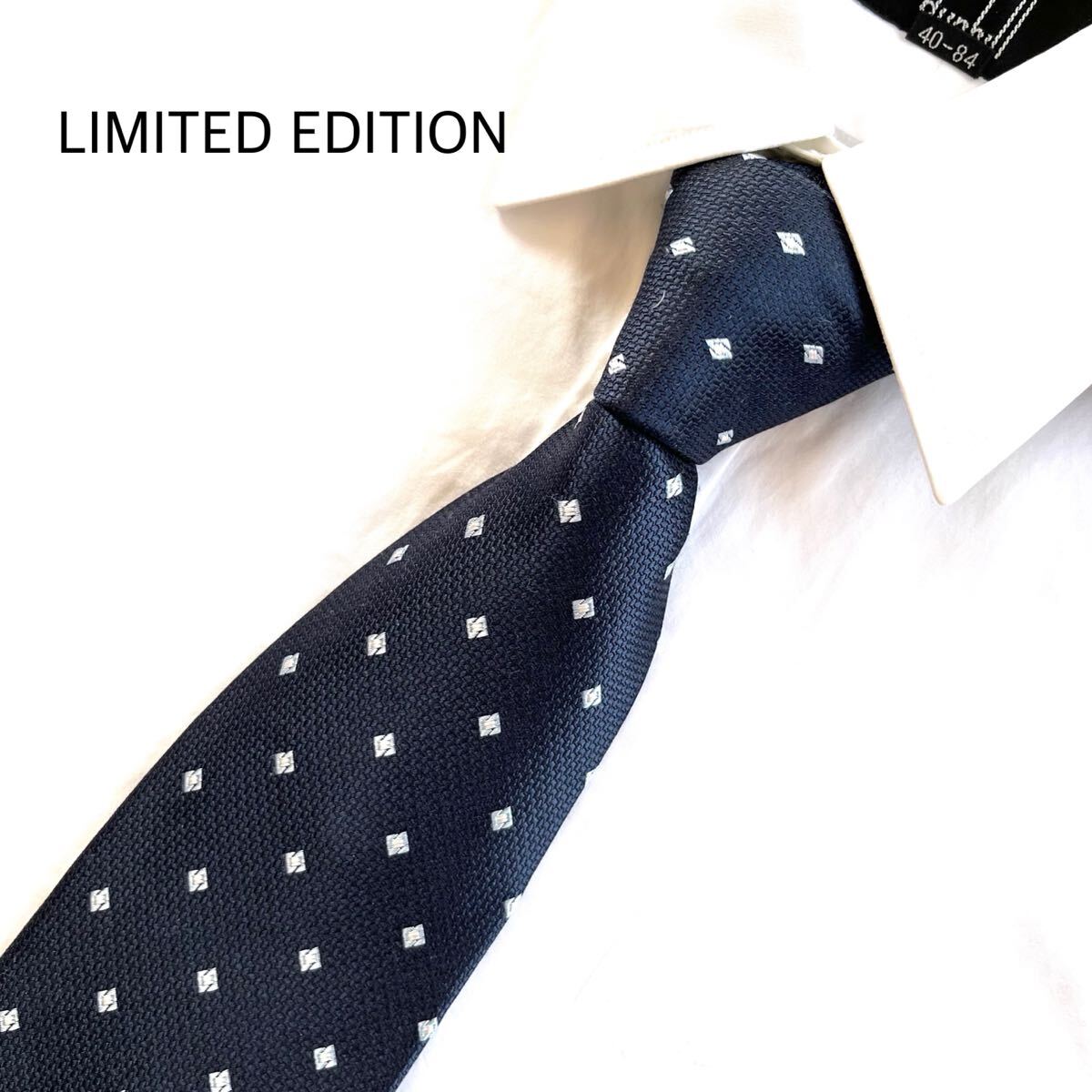 - 美品 リミテッドエディション LIMITED EDITION シルク ネクタイ ブランドネクタイ パターン柄 ネイビー 紺 ビジネス カジュアル フォーマル