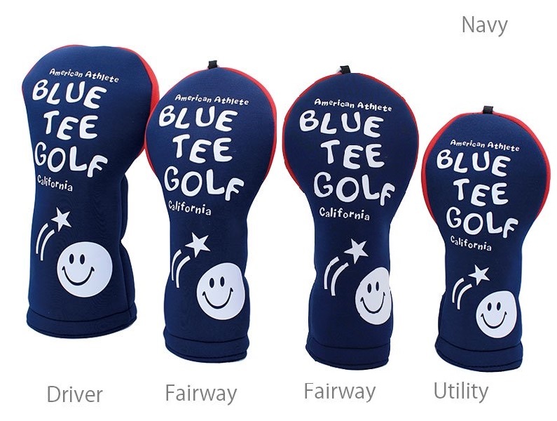 - ◎『HC34タイプ』ブルーティーゴルフ【4Pネイビー:ストレッチスマイル】4本セットヘッドカバー HC-34 BLUE TEE GOLF 送料無料