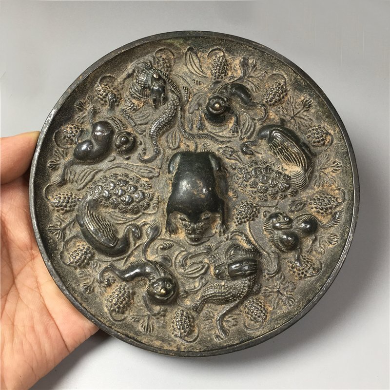 - 極美品 !高品質!中国 漢 海獣葡萄鏡 青銅鏡 青銅彫 銅製 銅鏡 置物 擺件 収蔵 鑑賞 中国美術品zhzx189