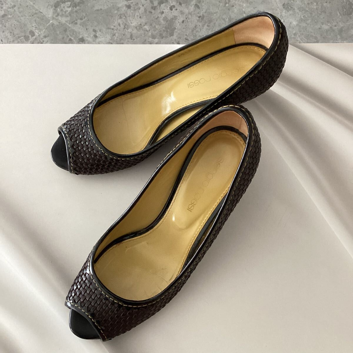 - セルジオロッシ オープントゥウェッジヒールパンプス ダークブラウン