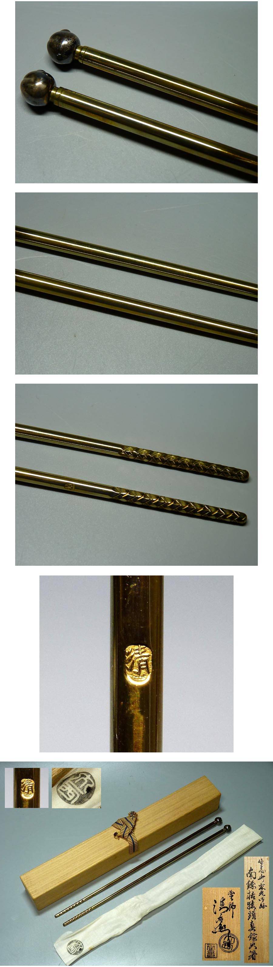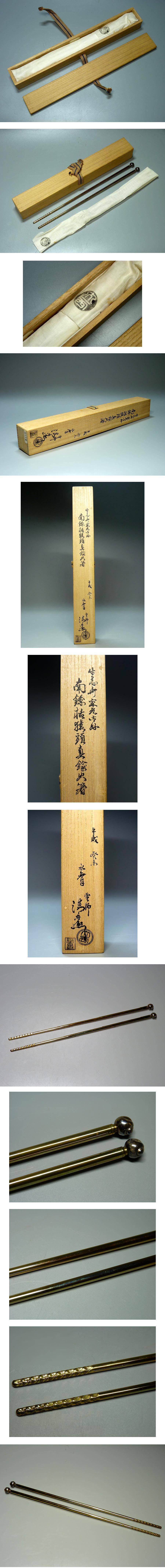 - 【夢たま】茶道具店のウブ品!大西清右ヱ門 造り 南鐐括猿頭真鍮火箸/共箱 共布 未使用 釜師☆