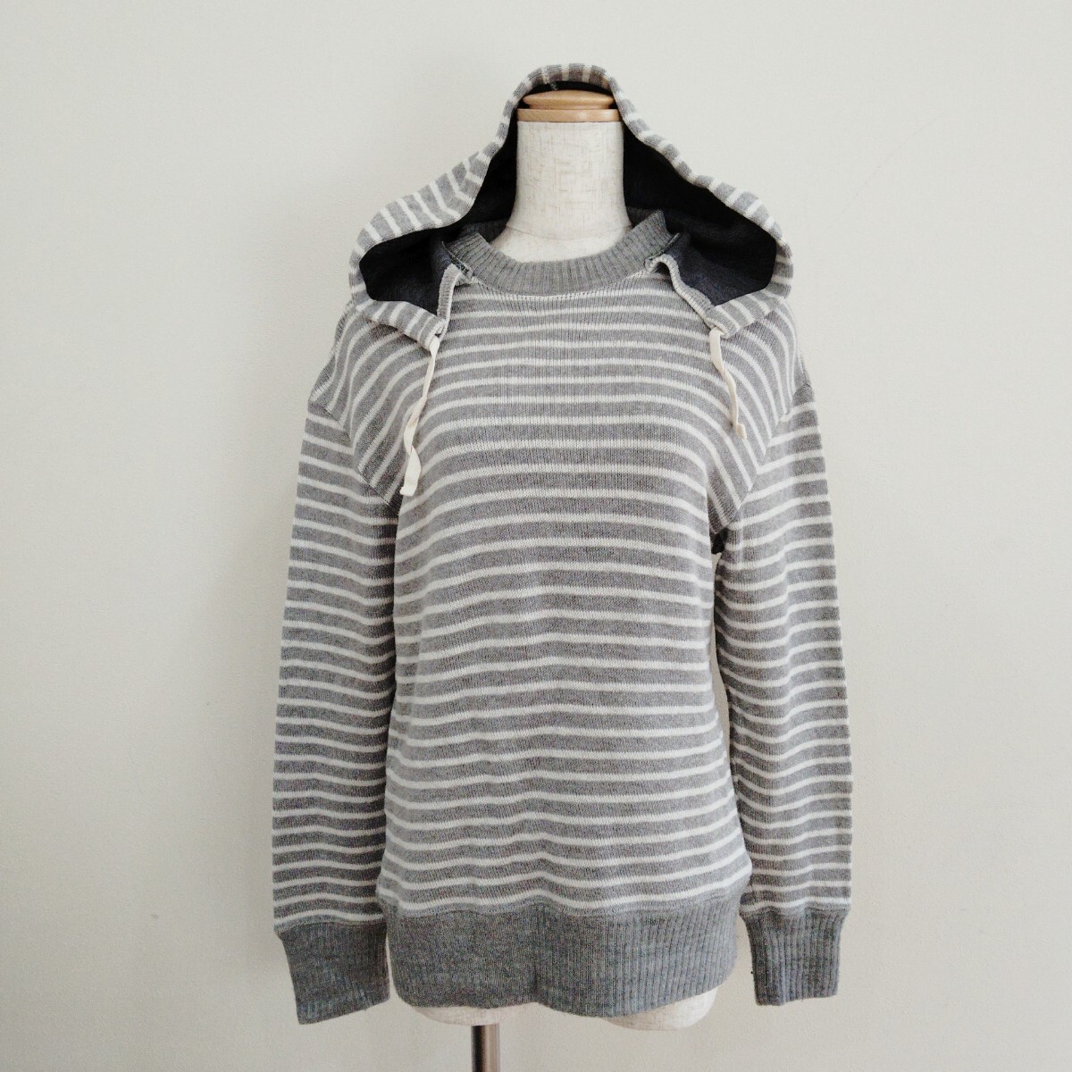 - 187/M/ANDFAMILYS レディース ニットパーカー フード ボーダー グレー