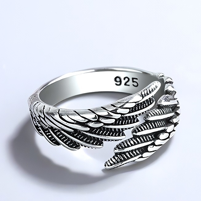- 新品★送料無料★天使の翼フリーサイズ フェザー羽彫刻プラチナ仕上 925シルバーリング誕生日プレゼント旅行連休秋祭冬ギフト国内発送