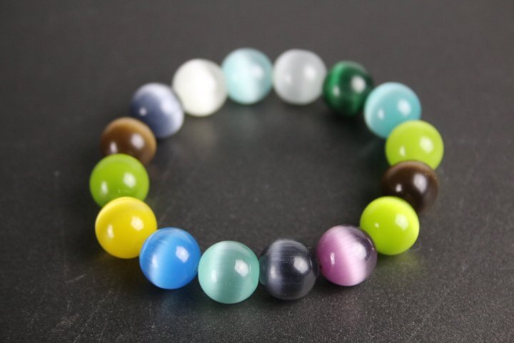 - キャッツアイビーズ ストレッチブレスレット ミックスカラー