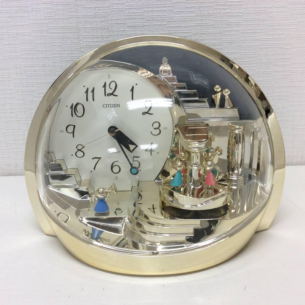> ■4184 CITIZEN シチズン リズム時計 シルエットロマンス 4SG677 置時計 クオーツ ゴールドカラー 通電確認済み