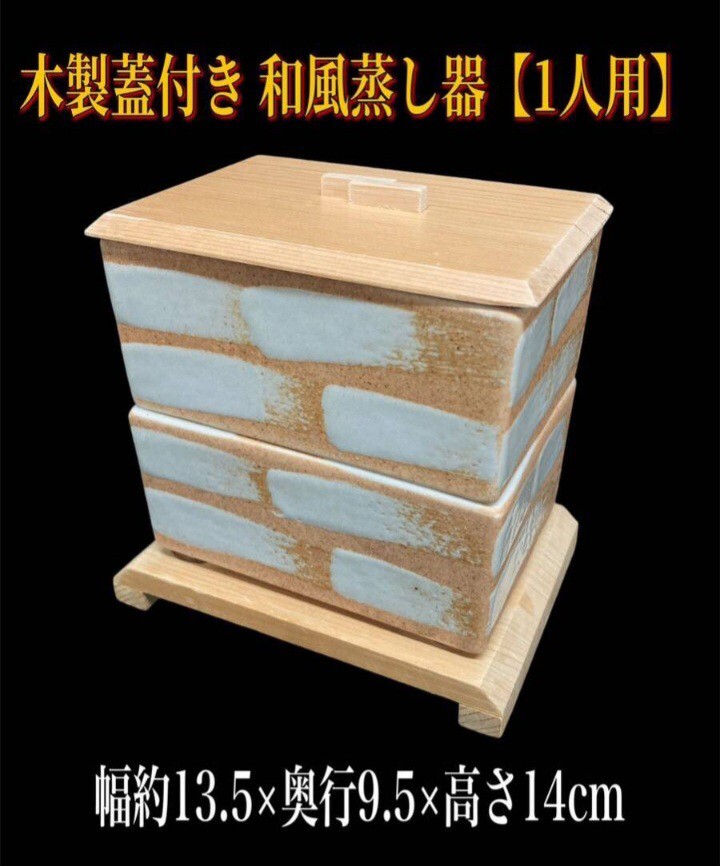 - 岩③) 木製蓋付き 和風蒸し器 10個セット 1人用 2段 蒸し鉢 水切り鉢 陶器 和食器 料亭 和食 割烹 懐石 蒸し器 飲食店 業務用 中古 250929