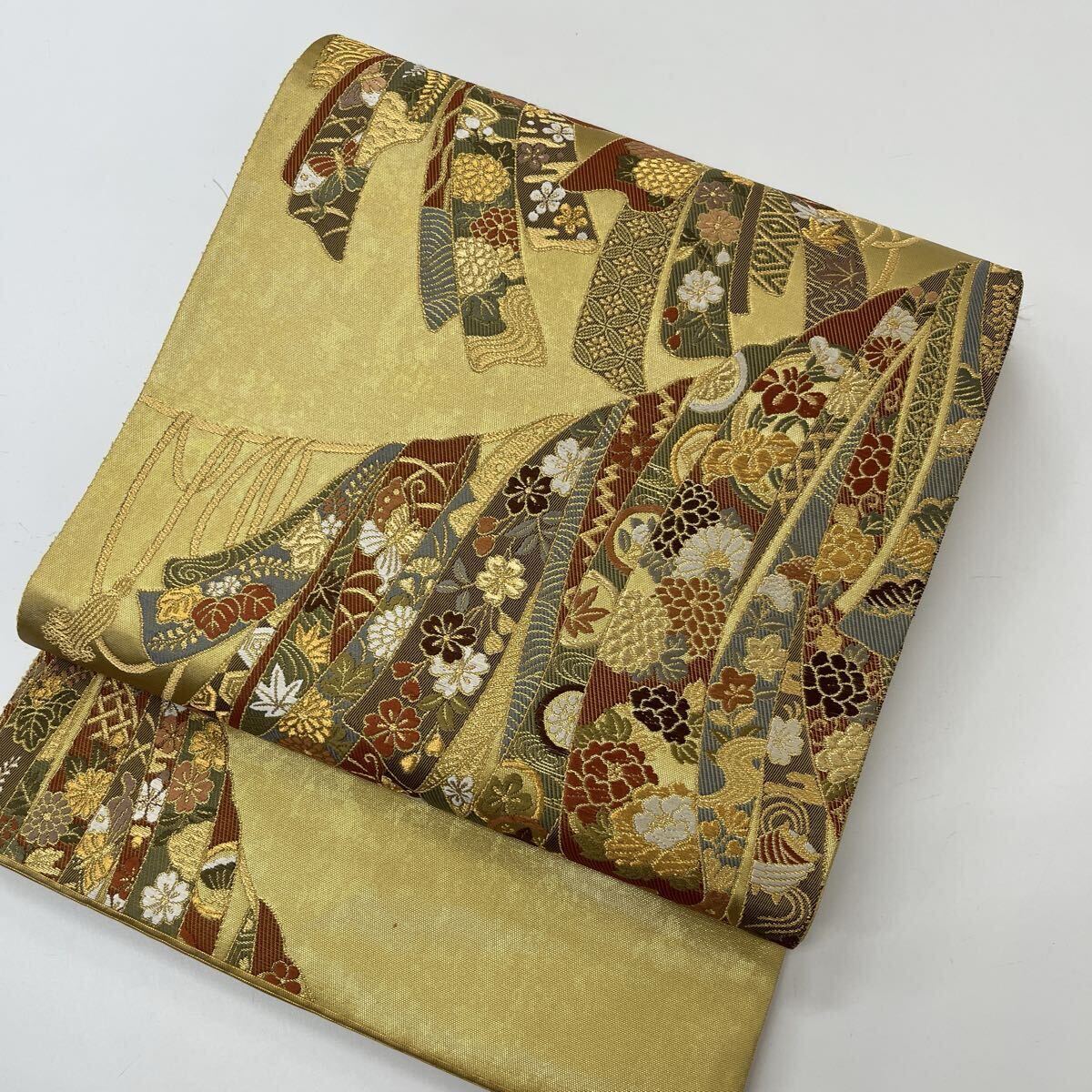 > 袋帯 唐織 美しい細かな加工 金彩 正絹 W-4464