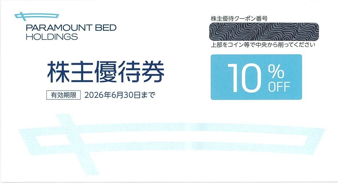 > 甲南☆【コード連絡対応も可能(商品の発送なし・送料無料)】パラマウントベッド☆株主優待券10%OFF☆2026.6.30【管理4580】