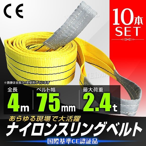 > 【10本セット】新品未使用 スリングベルト 耐荷重2400kg 幅75mm×長さ4m ナイロン ベルト スリング 荷吊りベルト 荷揚げ 玉掛け 牽引 倉庫