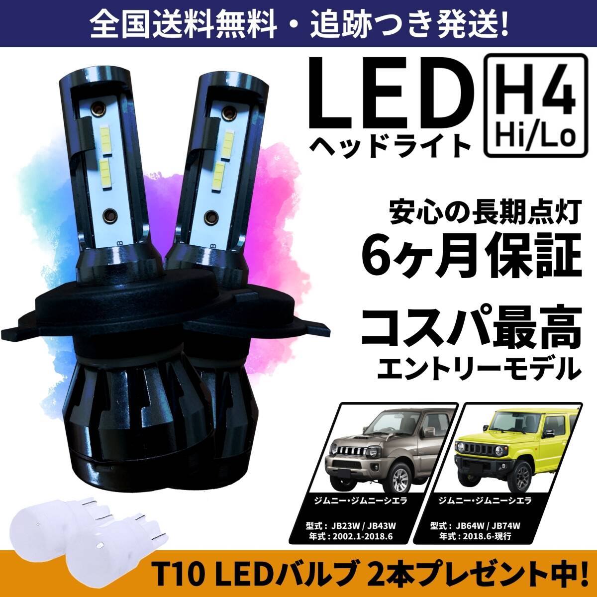 - 【送料無料】スズキ ジムニー ジムニーシエラ JB23W JB43W JB64W JB74W LEDヘッドライト H4 Hi/Lo ホワイト 6000K 車検対応 保証付き